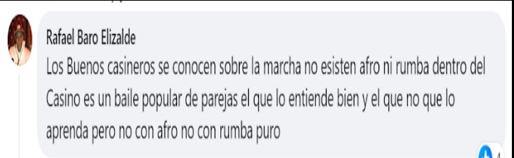 Y eso… eso necesita ser discutido en mucho más detalle porque, durante mucho tiempo, criticar un video porque muestra algo que no es auténticamente o puramente cubano, incluso cuando las personas que suben el video lo llaman “cubano”, ha estado asociado con cierta “retórica” de cierta persona en la comunidad de baile cubano en el extranjero (más sobre esto más adelante). Durante mucho tiempo, comentar en un video de baile “cubano” y decir que no es lo suficientemente cubano o criticar los “inventos” que se están haciendo con el baile de casino, se ha visto como una forma de pensar marginal. A veces, cuando digo algo similar, me asocian instantáneamente con una persona en particular. Otras veces, me llaman “divisivo”, seguido de una pregunta muy condescendiente de “¿Por qué no podemos llevarnos todos bien?”