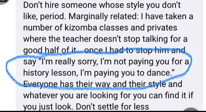Esta persona ha sido defraudada por cada profesor de baile cubano que ha tenido. En cada paso del camino, nadie contextualizó suficientemente la rueda de casino dentro de su cultura para explicar que la rueda no es un baile.